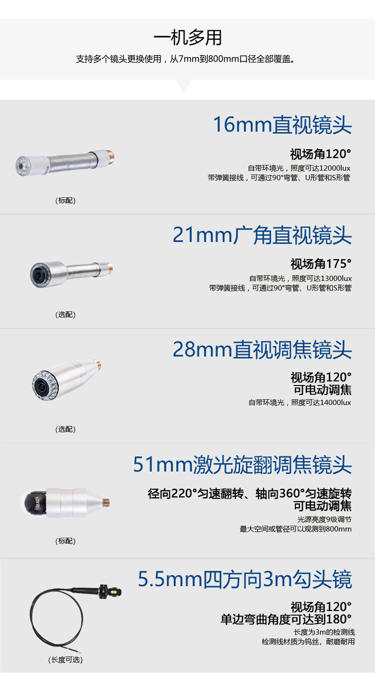 EXPERT系列工業(yè)視頻內(nèi)窺鏡實(shí)現(xiàn)了管道鏡與勾頭鏡的完美結(jié)合,一機(jī)多用,兼容性強(qiáng)。鏡頭通過旋轉(zhuǎn)翻轉(zhuǎn)、調(diào)焦、激光測(cè)量、異物打撈等功能,能夠高效的對(duì)不同直徑的管道內(nèi)部進(jìn)行檢測(cè)、診斷,并實(shí)時(shí)記錄管道內(nèi)部工況。檢測(cè)過程中圖像支持中英文命名及抓拍功能,支持WIFI熱點(diǎn)連接,可隨時(shí)進(jìn)行遠(yuǎn)程數(shù)據(jù)傳輸,在線查詢資料等,方便快捷!